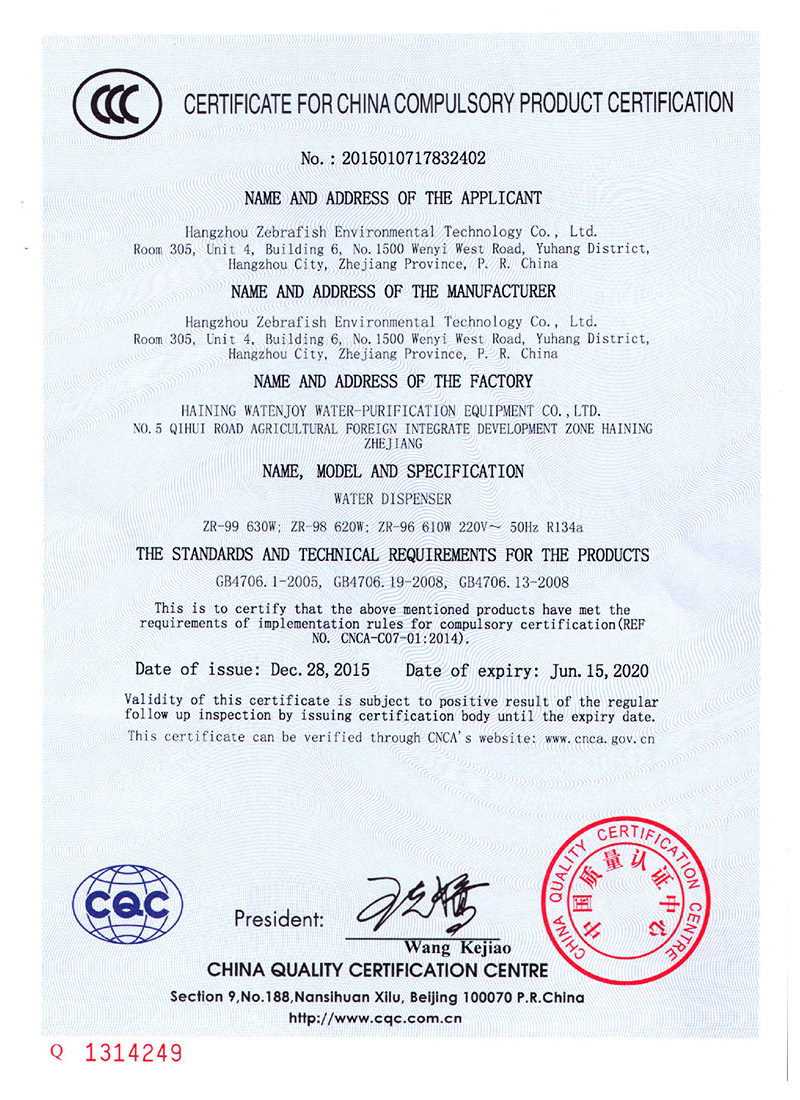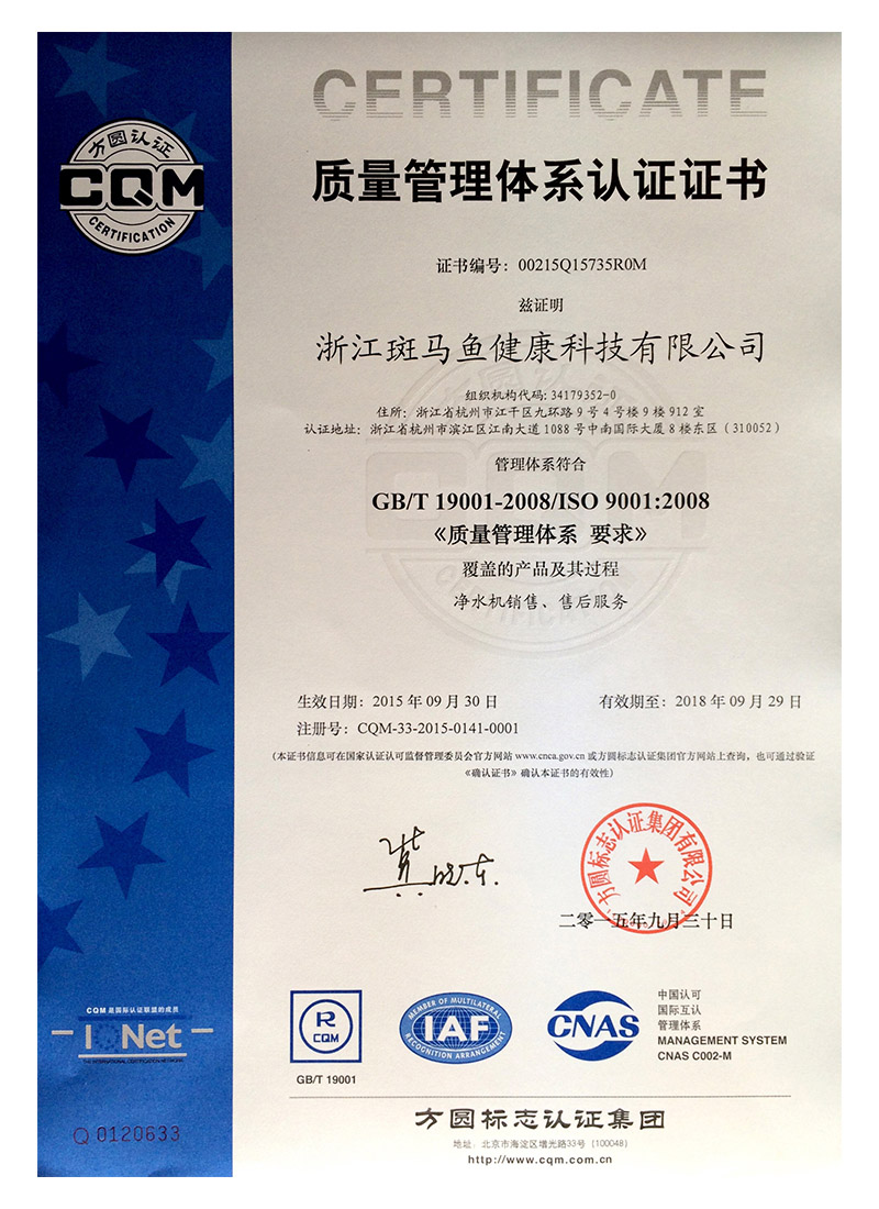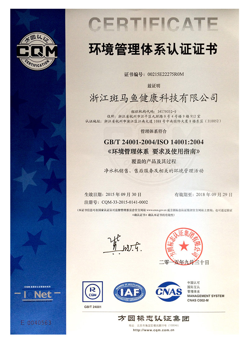 工廠是 國(guó)家級(jí)高新技術(shù)企業(yè) ,凈水行業(yè)標(biāo)準(zhǔn)制定單位之一,已通過(guò) ISO9001、ISO14001、ROHS、CE 等認(rèn)證。
