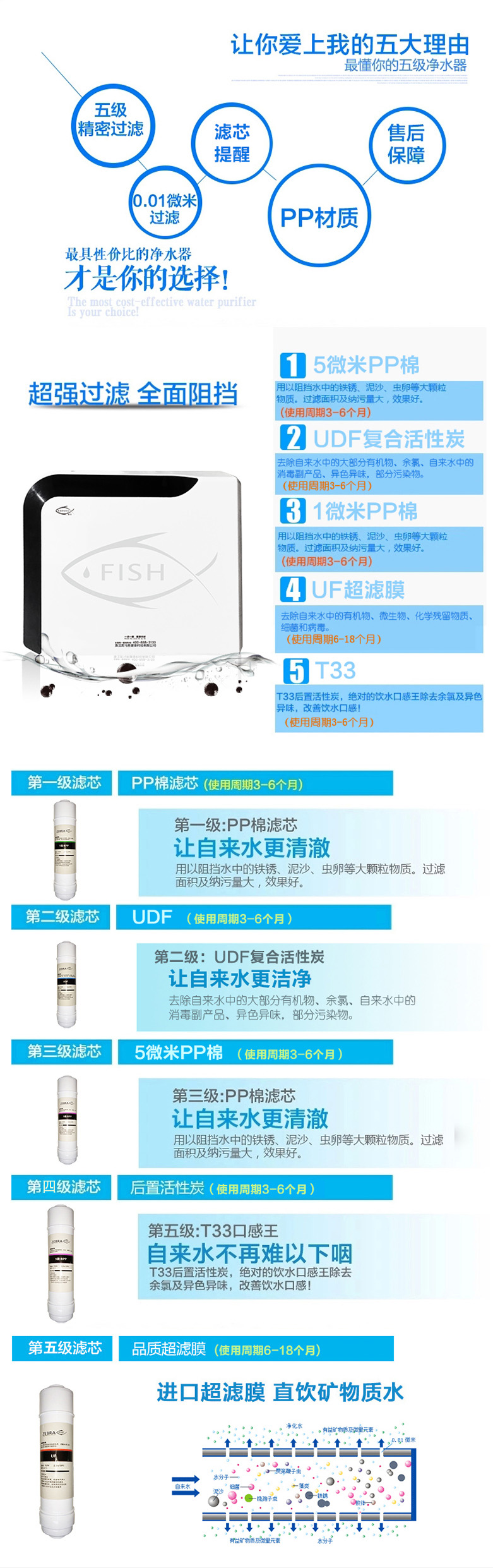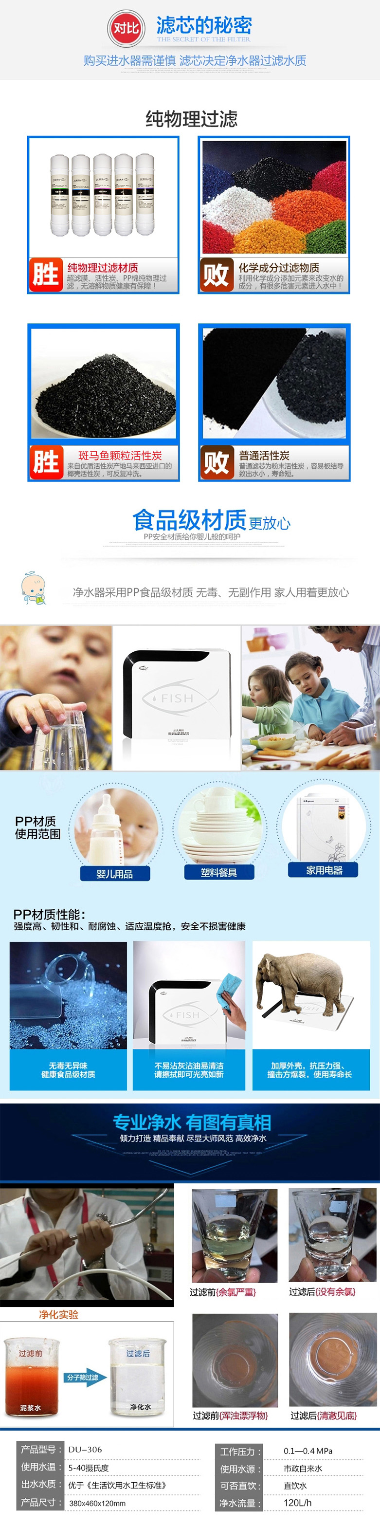 1、5層過濾,層層凈化,守護您飲水的最后一道防線;2、濾芯為非標9寸,過濾能力強,出水流量大;3、采用120L大容量超濾膜,去除效果更優,品保證出水品質;4、采用東南亞進口椰殼酸洗活性炭,出水清冽甘甜,口感更好;5、濾芯到期自動更換提醒,避免過期濾芯造成二次污染;