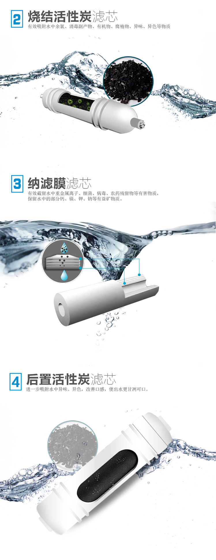6、本機納濾膜配置,解除了超濾機無法去除重金屬和反滲透機完全去除微量元素的難題,最適宜人體飲用;