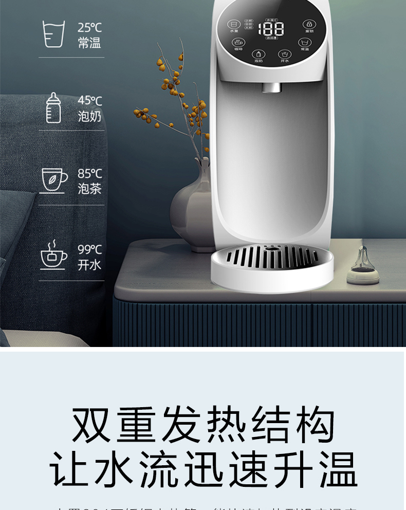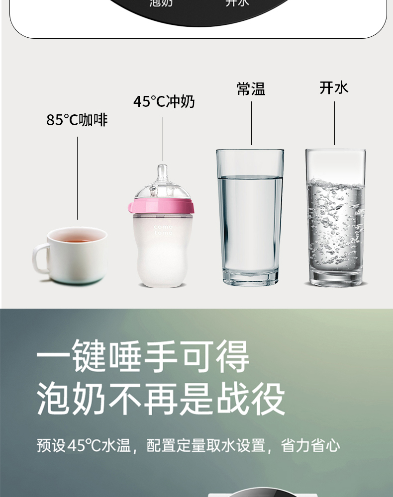 4檔調溫,滿足溫水、泡奶粉、泡咖啡、泡茶等不同溫度需求;