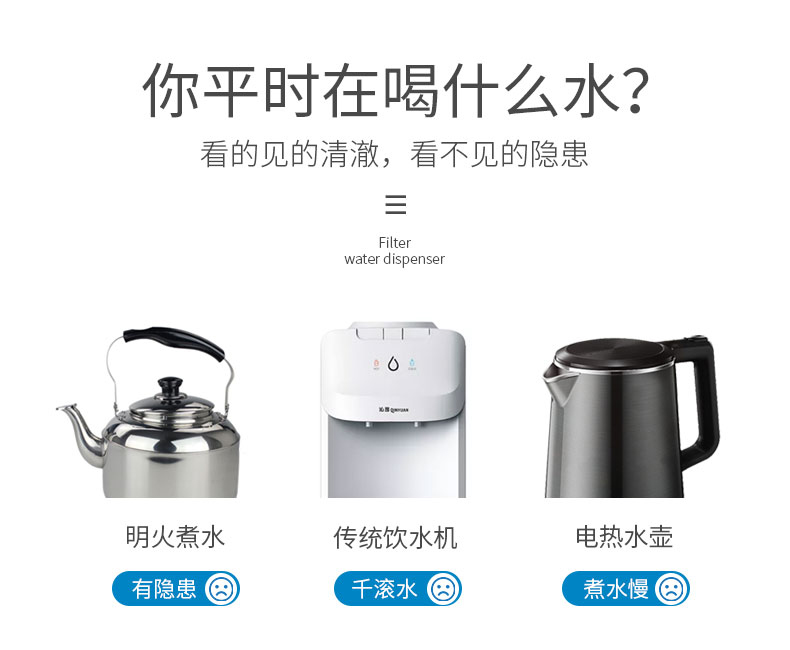 直飲水、瓶裝水、桶裝水均可,各規格不受限,插電即用;