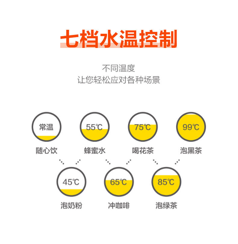 5檔調溫,滿足溫水、泡奶粉、泡咖啡、泡茶等不同溫度需求;