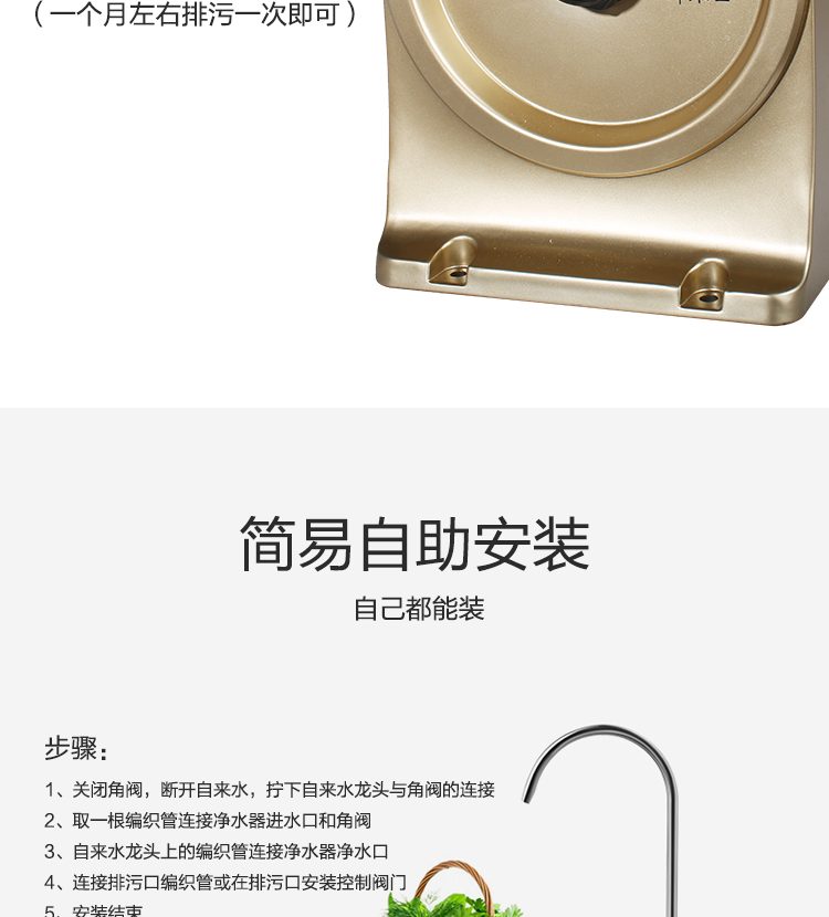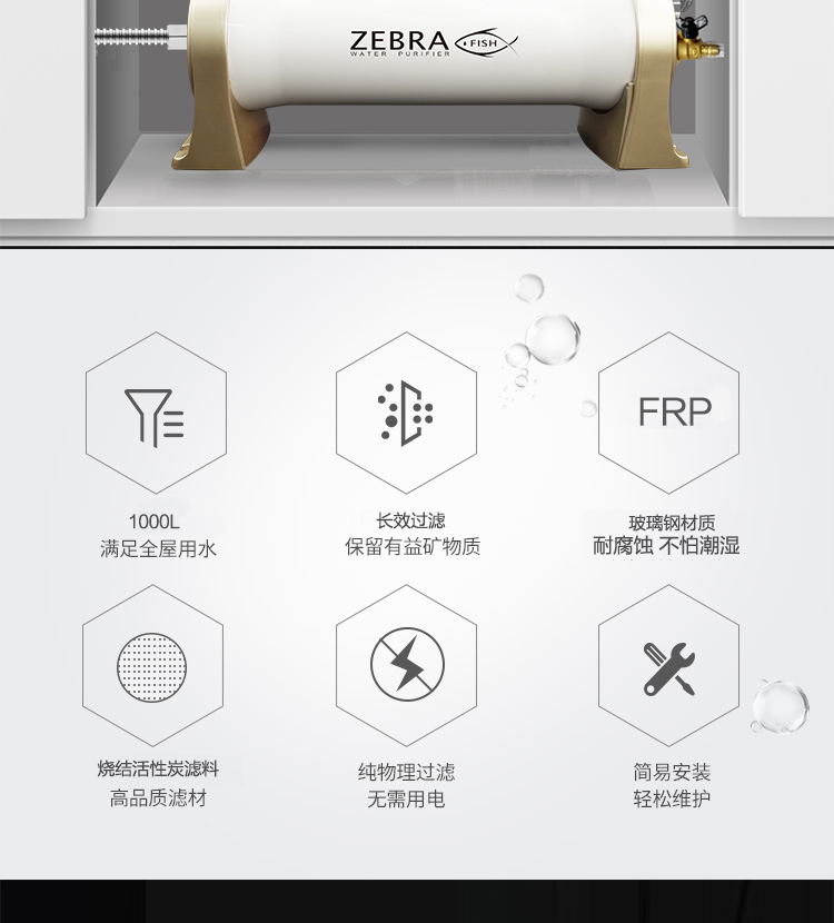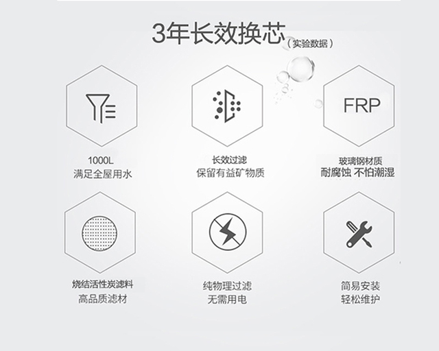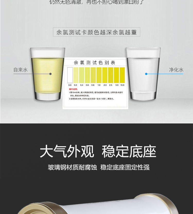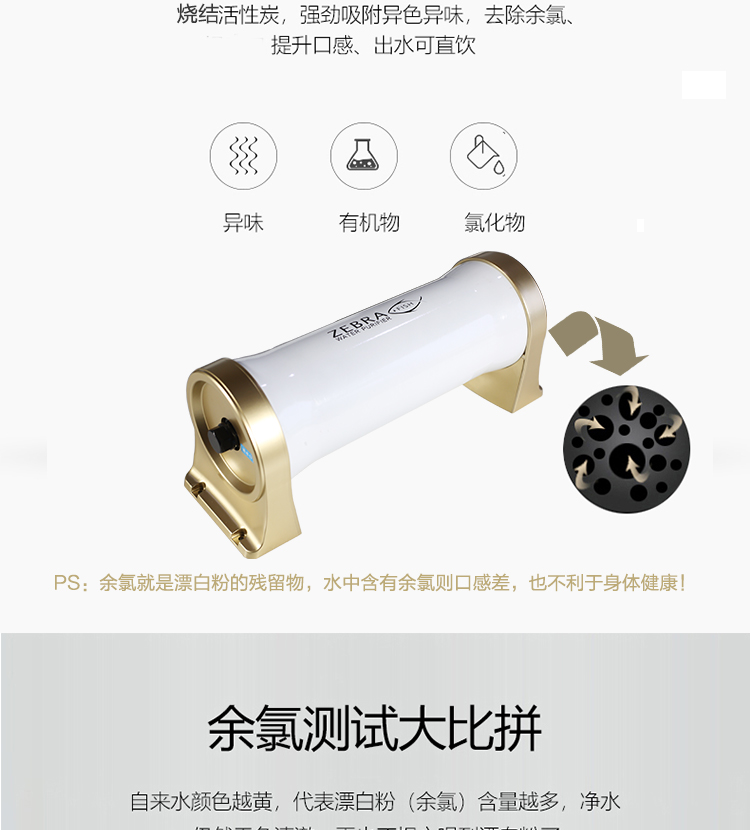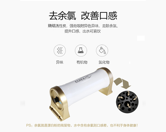 采用高品質(zhì)燒結(jié)活性炭濾料,吸附異色異味,去余氯,提升口感。